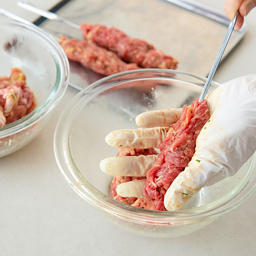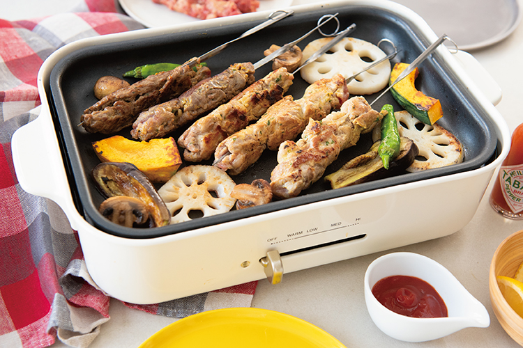 具材が焼けたら、ケチャップやタバスコを添える。