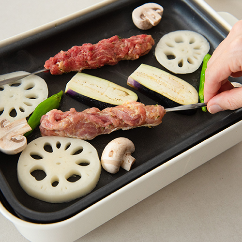 ![]() 熱して②、お好みの野菜を焼く。 |