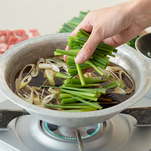 具材が足りなくなったら①の残りを加えて豚しゃぶしゃぶ用肉と一緒にいただく。