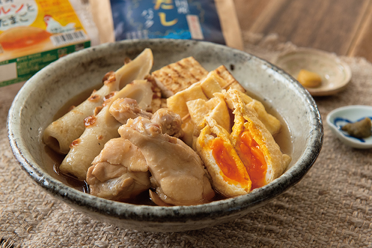 焼き豆腐は食べやすい大きさに切り、ちくわは斜め半分に切る。手羽元は骨に沿って切り込みを入れる。